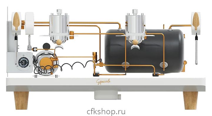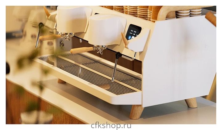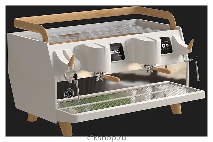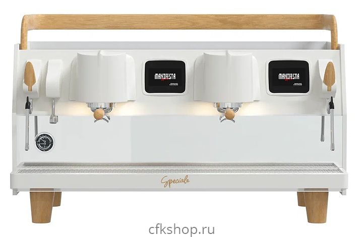 Профессиональная кофемашина Manifesta Speciale используется на предприятиях общественного питания и торговли, в офисах, а также в домашних условиях для приготовления кофе и кофейных напитков. Кофемашина идеально подходит для работы в условиях большого потока клиентов. Модель оснащена основным бойлером и 2 отдельными бойлерами по 1 на каждую группу и 2 цветными сенсорными дисплеями, что дает возможность работать двум бариста одновременно, не мешая друг другу. Корпус выполнен из искусственного белого мрамора и нержавеющей стали, ручки холдеров и паровых кранов - из дерева, бойлеры - из нержавеющей стали.