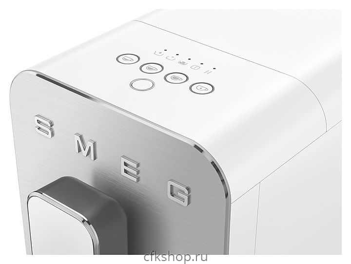Кофемашина Smeg BCC01WHMEU предназначена для приготовления эспрессо и кофейных напитков на его основе в частных домах и квартирах. Модель выполнена в стиле 50-х годов. Корпус изготовлен из цветного матового пластика, фронтальная панель и решетка поддона для капель - из матового алюминия с полированной рамкой, жернова кофемолки - из нержавеющей стали.