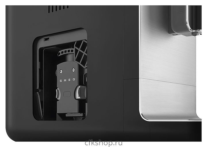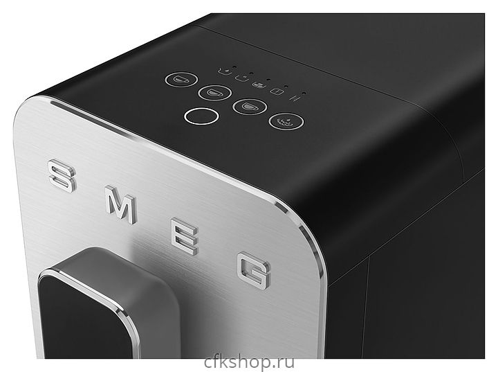 Кофемашина Smeg BCC02BLMEU предназначена для приготовления эспрессо и кофейных напитков на его основе в частных домах и квартирах. Модель выполнена в стиле 50-х годов. Корпус изготовлен из цветного матового пластика, фронтальная панель и решетка поддона для капель - из матового алюминия с полированной рамкой, жернова кофемолки и трубка подачи пара - из нержавеющей стали, держатель чашек - из алюминия, диспенсер и ручка емкости - из пластика.