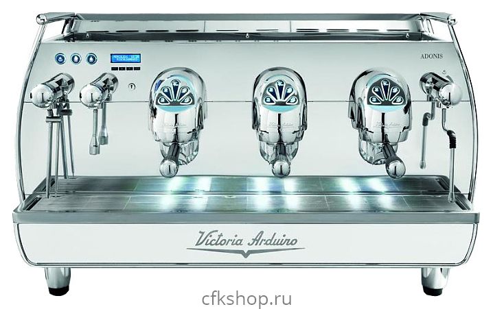 Традиционная автоматическая кофемашина Victoria Arduino Adonis 3 Gr используется в кофейнях, барах, ресторанах для приготовления эспрессо, капучино и различных кофейных напитков на их основе. Модель оснащена 2 паровыми кранами из нержавеющей стали с системой Push&Pull и 1 краном подачи горячей воды с экономайзером. Аппарат осуществляет автоматическую дозацию и подачу кипятка и пара.
