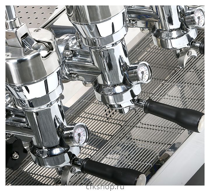 - Специальное устройство подает горячую воду только в используемую группу, что позволяет поддерживать давление заваривания на одном уровне