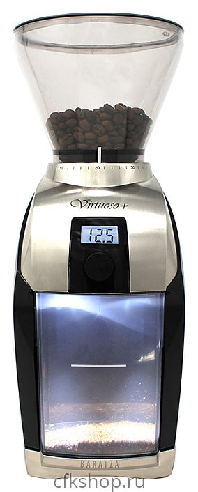Кофемолка Baratza Virtuoso+ используется на предприятиях общественного питания и торговли, в офисах и частных домах для получения молотого кофе из зерен. Доступны различные степени помола: от мельчайшего для эспрессо до более крупного для приготовления фильтр-кофе. Модель оснащена мощным двигателем постоянного тока и коническими жерновами. Жернова выполнены из прочной высокоуглеродистой стали.