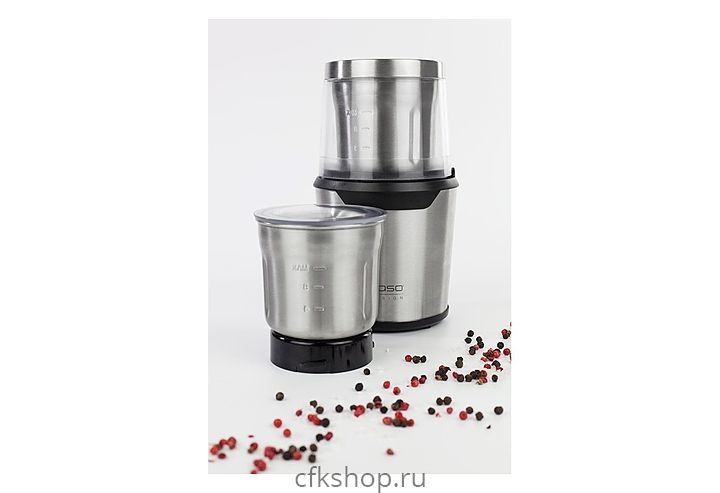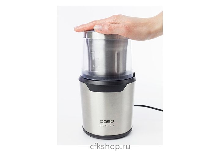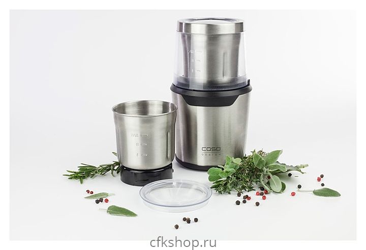 Кофемолка CASO UZ 200 используется в частных домах и квартирах, отелях и офисах для получения молотого кофе из зерен, а также измельчения очищенных орехов, специй и трав. Модель оснащена чашей с 2 лезвиями для измельчения мягких продуктов, чашей с 4 лезвиями для измельчения твердых продуктов и прозрачной крышкой. Корпус, чаши и лезвия выполнены из нержавеющей стали, крышка - из пластика.