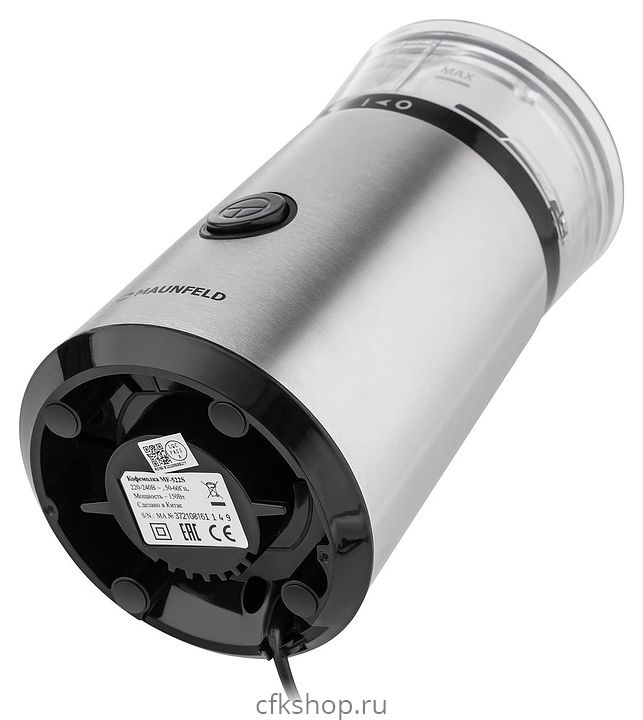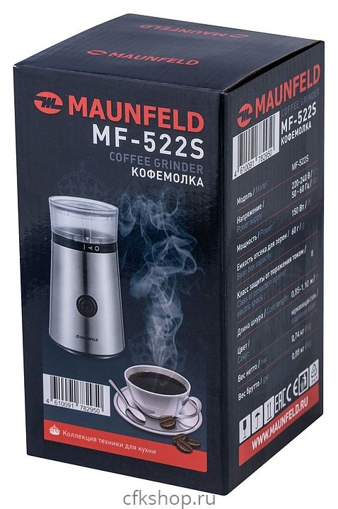 Кофемолка Maunfeld MF-522S предназначена для приготовления молотого кофе из зерен в домашних условиях. Модель оснащена кабелем питания с вилкой, съемными бункером и крышкой. Корпус цилиндрической формы выполнен из нержавеющей стали с сатинированной поверхностью, нож и основание бункера – из высококачественной нержавеющей стали, основание и верхняя часть корпуса – из черного пластика.