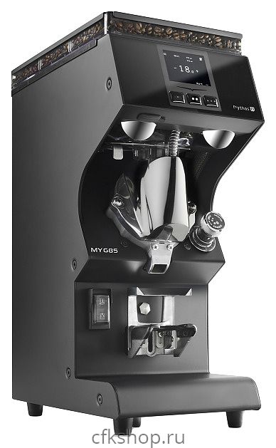 Кофемолка-дозатор Victoria Arduino Mythos MYG 85 предназначена для помола зерен кофе на предприятиях общественного питания и торговли, в гостиницах, офисах, а также домашних условиях. Модель оснащена фронтальной наклонной панелью с 3 функциональными клавишами и сенсорным жидкокристаллическим дисплеем управления и индикации (touchscreen). Корпус выполнен из нержавеющей стали с покрытием черного цвета, наклонная фронтальная панель – из черного стекла, бункер – из прозрачного пластика.