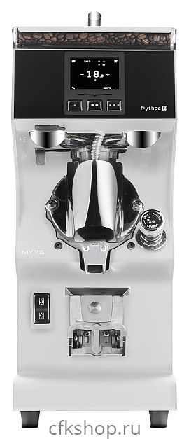 Кофемолка-дозатор Victoria Arduino Mythos MY 75 предназначена для помола зерен кофе на предприятиях общественного питания и торговли, в гостиницах, офисах, а также домашних условиях. Модель оснащена фронтальной наклонной панелью с 3 функциональными клавишами и сенсорным жидкокристаллическим дисплеем управления и индикации (touchscreen). Корпус выполнен из нержавеющей стали с покрытием белого цвета, наклонная фронтальная панель – из черного стекла, бункер – из прозрачного пластика.