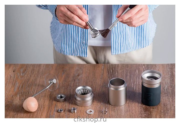 Ручная кофемолка 1Zpresso J Manual используется на предприятиях общественного питания и торговли, в офисах и частных домах для получения молотого кофе из зерен. Модель оснащена большими жерновами. Корпус изделия выполнен из нержавеющей стали, алюминиевого сплава и дерева, жернова - из нержавеющей стали.