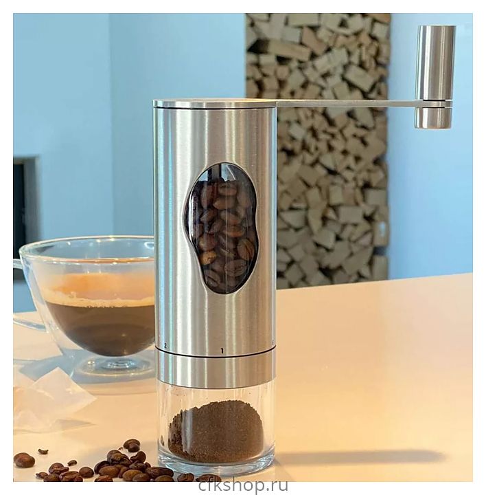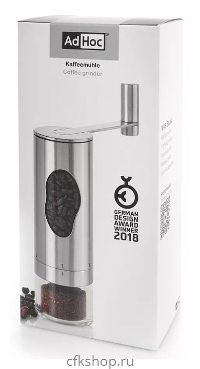 Ручная кофемолка Adhoc Mrs. Bean MC01 используется на предприятиях общественного питания и торговли, в офисах и частных домах для получения молотого кофе из зерен. Модель оснащена уникальным механизмом измельчения CeraCut, который основан на работе керамических жерновов, обладающих абсолютной невосприимчивостью к воздействию внешних факторов. Корпус выполнен из нержавеющей стали и акрила.