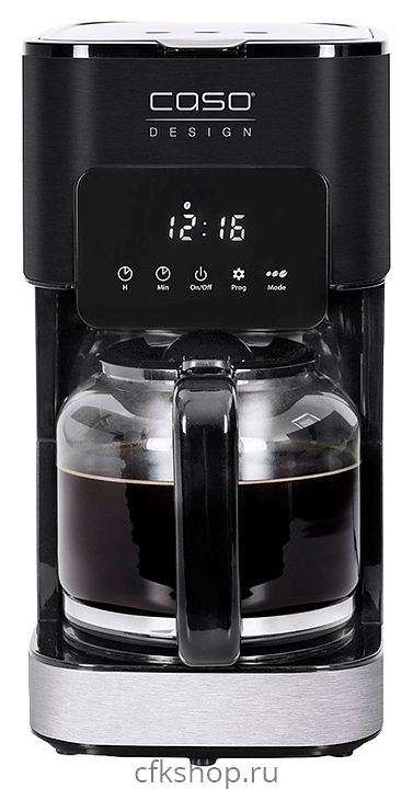 Кофеварка CASO Coffee Taste & Style используется в частных домах, квартирах, отелях и офисах для приготовления кофе и напитков на его основе. Модель оснащена сенсорной панелью управления с дисплеем, на котором отображаются часы, резервуаром для воды с индикатором уровня воды и держателем для фильтра с постоянным фильтром. Корпус выполнен из пластика с элементами из нержавеющей стали, кувшин для кофе - из стекла.