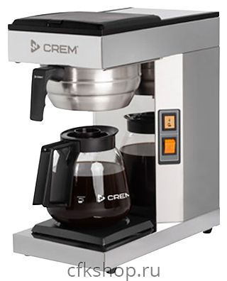 Кофеварка Crem M1 используется на предприятиях общественного питания и торговлина предприятиях общественного питания и торговли, в кафе, ресторанах, гостиницах, офисах и частных домах для приготовления фильтр-кофе. Модель оснащена плиткой для подогрева и кофейником. Кофемолка заполняется водой вручную.