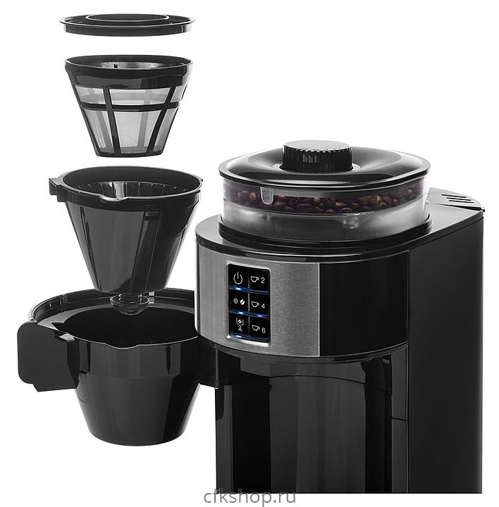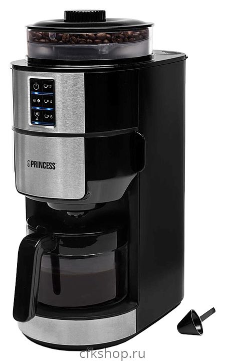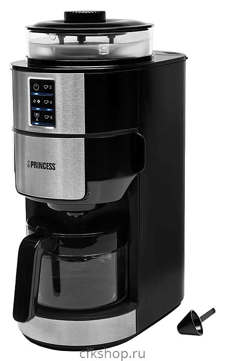 Кофеварка Princess 249408 используется в частных домах, квартирах, отелях и офисах для приготовления кофе из молотых зерен. Модель оснащена электронной панелью управления с цифровым дисплеем, встроенной кофемолкой с коническими жерновами и прозрачным бункером для зерен. Корпус выполнен из пластика и нержавеющей стали, колба для кофе - из стекла.
