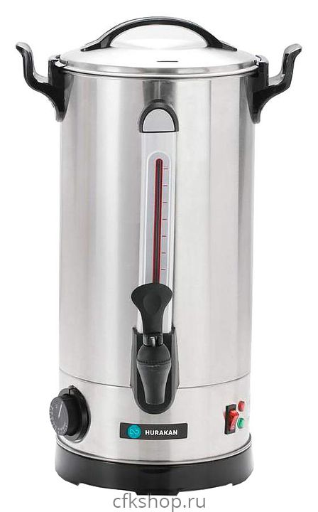 Кофеварка-перколятор Hurakan HKN-PCR10 используется на предприятиях общественного питания и торговли для для приготовления и раздачи кофе и чая, нагрева большого количества воды. Модель оснащена индикатором нагрева, встроенным термостатом и защитой от перегрева. Корпус, стенки и внутренние элементы выполнены из нержавеющей стали.