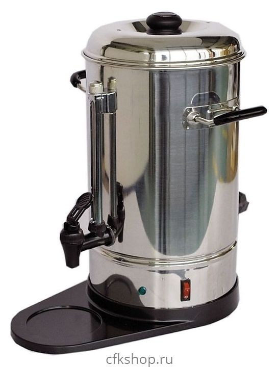 Кофеварка-перколятор VIATTO CP06 используется на предприятиях общественного питания и торговли для приготовления чая и кофе, нагрева и кипячения воды. Модель оснащена ситом, которое позволяет заваривать кофе и чай. Корпус выполнен из нержавеющей стали, кран для розлива, ручки корпуса и крышки - из пластика.