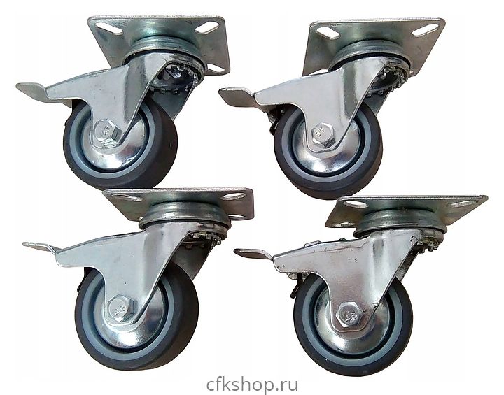 - В комплект поставки входят 4 колеса с тормозом
