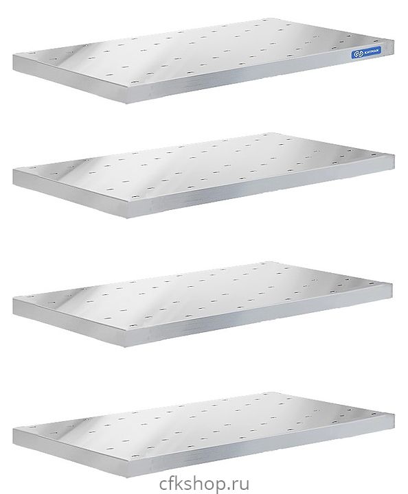 Комплект перфорированных полок KAYMAN используется совместно с кухонным стеллажом ПС-44/1504 на предприятиях пищевой промышленности, общественного питания и торговли. Изделие выполнено из нержавеющей стали AISI 430 толщиной 0,8мм.