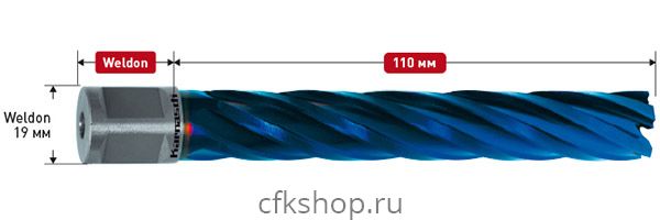 Корончатое сверло Karnasch (Карнаш) из серии BLUE-LINE, рабочая длина 110 мм, диаметр сверла 27 мм, хвостовик Weldon 19 (3/4") (артикул 201280027).