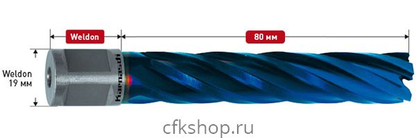 Немецкое корончатое сверло бренда Karnasch из серии BLUE-LINE с хвостовиком WELDON 19 мм – оптимальная модель для работы с нержавеющей, конструкционной сталью, алюминием, медью, пластиком, чугуном и редкими материалами. Такой инструмент используется для сверления железнодорожных рельсов. Сверло имеет уникальное покрытие DURABLUE, благодаря чему обеспечивается точная и беспрепятственная работа в не совсем оптимальных условиях (например, при отсутствии охлаждения или смазочных материалов).