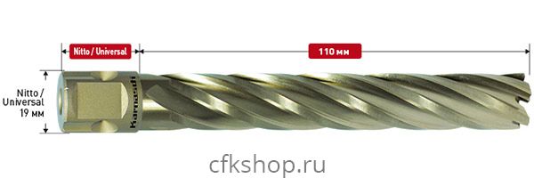 Корончатое сверло Karnasch (Карнаш) из серии GOLD-LINE, рабочая длина 110 мм, диаметр сверла 27 мм, хвостовик Nitto (артикул 201280N027).