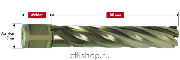 Корончатое сверло Karnasch (Карнаш) из серии GOLD-LINE, рабочая длина 80 мм, диаметр сверла 32 мм, хвостовик Weldon 19 (3/4") (артикул 201285U032).