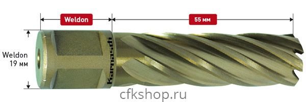 Корончатое сверло Karnasch (Карнаш) из серии GOLD-LINE, рабочая длина 55 мм, диаметр сверла 35 мм, хвостовик Weldon 19 (3/4") (артикул 201270U035).