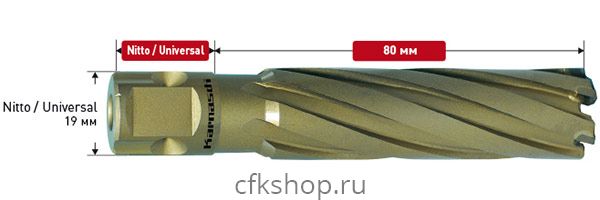 Корончатое сверло Karnasch (Карнаш) из серии HARD-LINE, рабочая длина 80 мм, диаметр сверла 43 мм, хвостовик Nitto (артикул 201650N043).