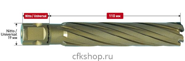 Корончатое сверло Karnasch (Карнаш) из серии HARD-LINE, рабочая длина 110 мм, диаметр сверла 45 мм, хвостовик Nitto (артикул 201660N045).