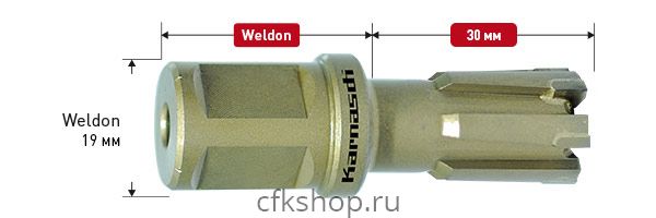 Корончатое сверло Karnasch (Карнаш) из серии RAIL-LINE, рабочая длина 30 мм, диаметр сверла 35 мм, хвостовик Weldon 19 (3/4") (артикул 201306035).