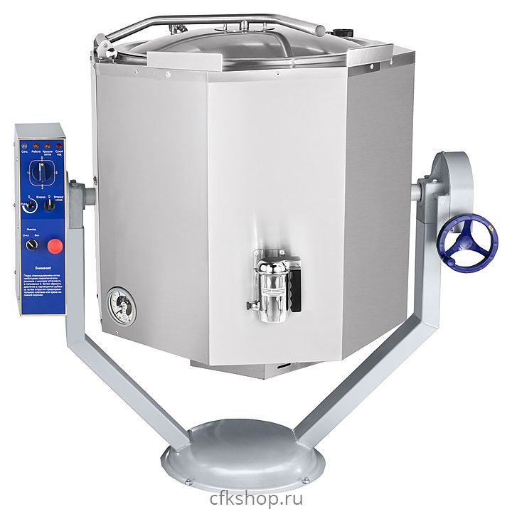 - Слив готового продукта путем ручного опрокидывания варочного сосуда с помощью червячной передачи