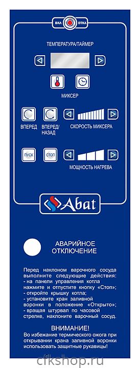 Варочный котел Abat КПЭМ-60-ОМР-ВК с функциями опрокидывания и перемешивания предназначен для приготовления вторых и третьих блюд, бульонов, соусов и десертов, а также для кипячения воды на предприятиях пищевой промышленности и общественного питания. Модель оснащена электронной панелью управления и сливным краном, позволяющим производить слив готового продукта без опрокидывания.