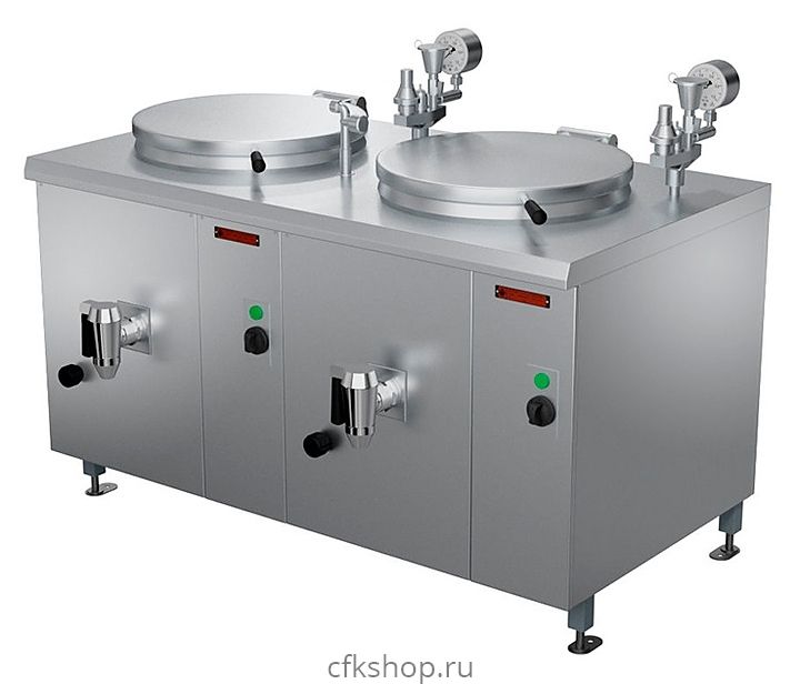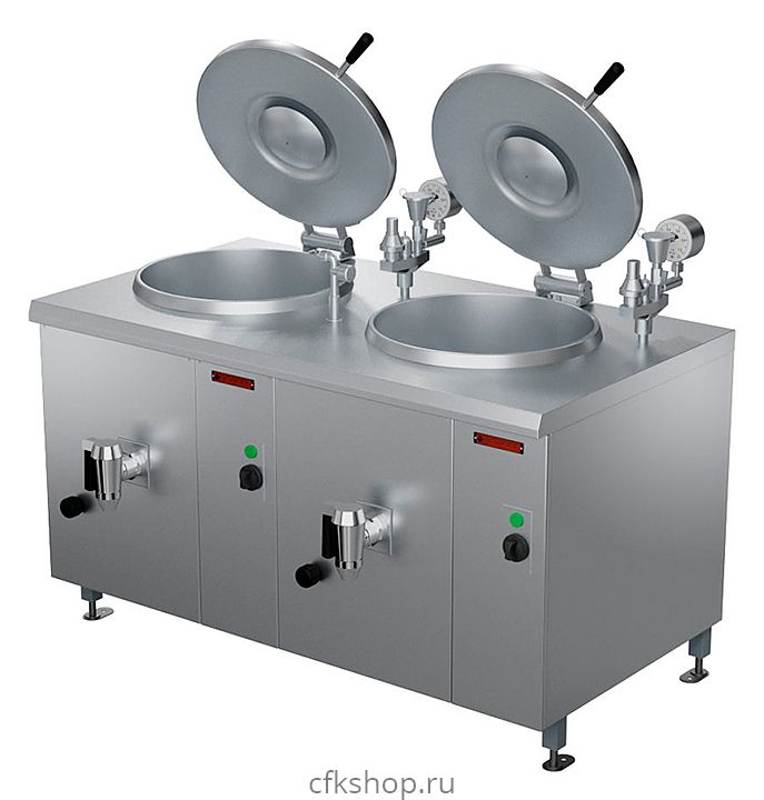Варочный котел Проммаш КЭ-200Ц используется на предприятиях общественного питания и торговли для кипячения воды, приготовления бульонов и третьих блюд. Модель оснащена 2 независимыми варочными сосудами и внешним металлическим коробом с негерметичной крышкой. Корпус изготовлен из крашеного металла с облицовкой из нержавеющей стали.