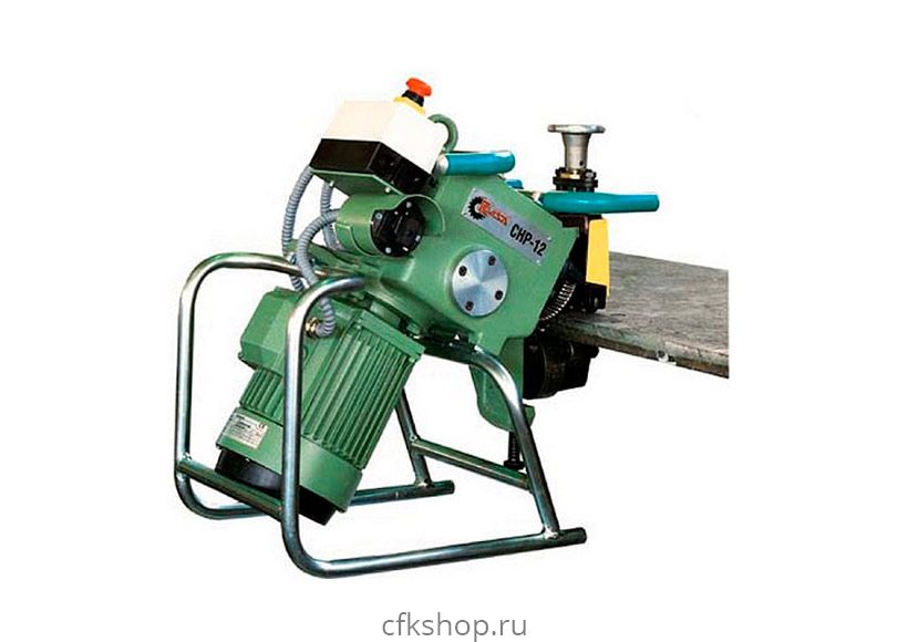 Кромкоскалывающий агрегат СНР-12 предназначен для разделки как односторонних, так и двухсторонних кромок листовых материалов из углеродистой и нержавеющей сталей, а также из алюминия и его сплавов под сварку.Агрегат может применяться как в настольном варианте (для обработки кромки под сварку на деталях малой и средней величины, подаваемых вручную), так и в мобильном (например расположив агрегат непосредственно на кромке заготовки без применения дополнительных приспособлений, а также на балансире или тележке для обработки кромки под сварку на деталях крупных размеров, расположенных на рабочем столе). Конструкция агрегата обеспечивает механическую подачу материала в стационарном и перемещение машины по заготовке в мобильном вариантах, возможность экстренного отключения систем, а также предохраняет электрические цепи от перегрузок.