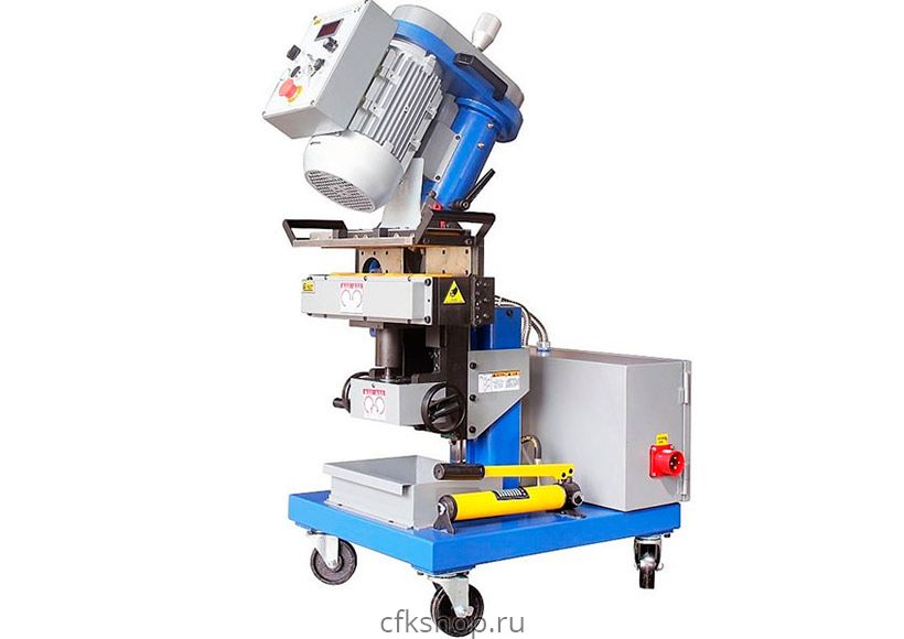 Подача обрабатываемых заготовок малого и среднего размера в зону реза фрезы производится автоматически с помощью подающих роликов, при обработке заготовок большого размера фаскосниматель самостоятельно перемещается по листу.