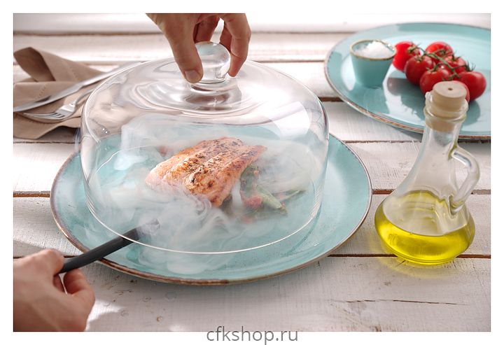 Купол HENDI 199978 используется на предприятиях общественного питания и торговли, а также в домашних условиях для ароматизации продуктов и готовых блюд кулинарными окуривателями и их последующей подачи на стол. Изделие выполнено из стекла.