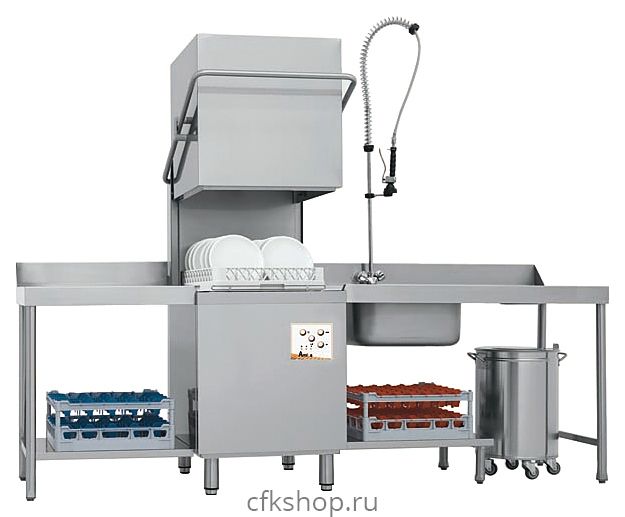 Внимание! На фото модель с опциями (стол для сортировки грязной посуды с моечной ванной и душирующим устройством, стол для чистой посуды).