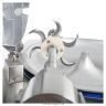- Использует принцип противоположно вращающихся элементов (чаша и нож)