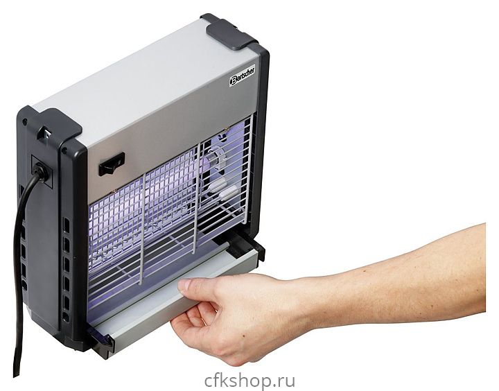Инсектицидная лампа Bartscher IV-22 300306 предназначена для привлечения ультрафиолетовым излучением и уничтожения электрическим током комаров, мух, мотыльков и прочих летающих вредителей посредством находящихся под высоким напряжением металлических решеток в залах кафе, ресторанов и на других предприятиях общественного питания. Корпус выполнен из пластика.