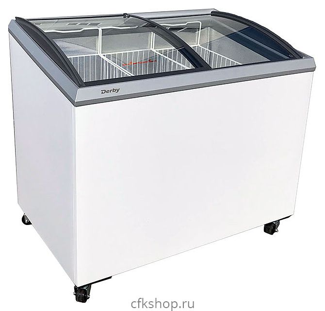 Морозильный ларь Derby EK-37C предназначен для демонстрации, заморозки и длительного хранения продуктов и полуфабрикатов на предприятиях общественного питания и торговли. Модель оснащена наклонными изогнутыми раздвижными стеклянными створками и верхним углом обзора продукта.