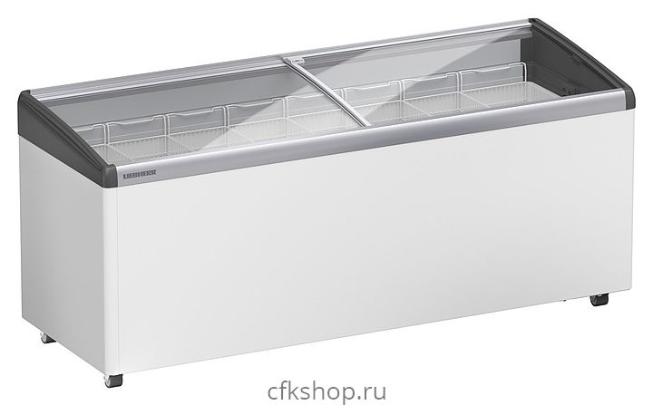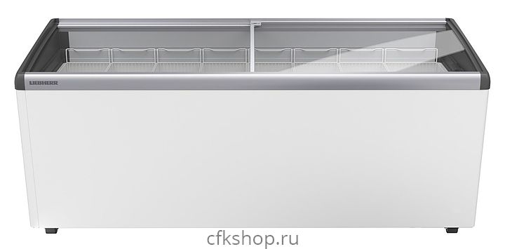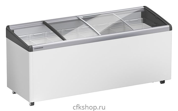 Морозильный ларь Liebherr EFI 5603 предназначен для демонстрации, заморозки и длительного хранения продуктов и полуфабрикатов на предприятиях общественного питания и торговли. Модель оснащена вместительными корзинами и раздвижной крышкой из гнуто-наклонного стекла. Корпус и внутренняя обшивка выполнены из стали, рама - из пластика и алюминия.