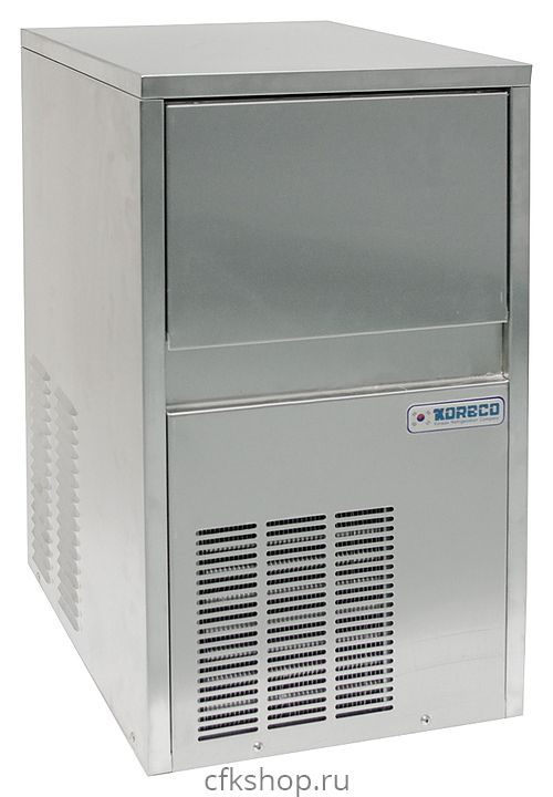 Льдогенератор Koreco AZ-20 используется на предприятиях общественного питания и торговли для производства пальчикового льда для охлаждения коктейлей, алкогольных и безалкогольных напитков. Корпус выполнен из нержавеющей стали AISI 304, камера - из ABS-пластика, теплоизоляция - из пенополиуритана.