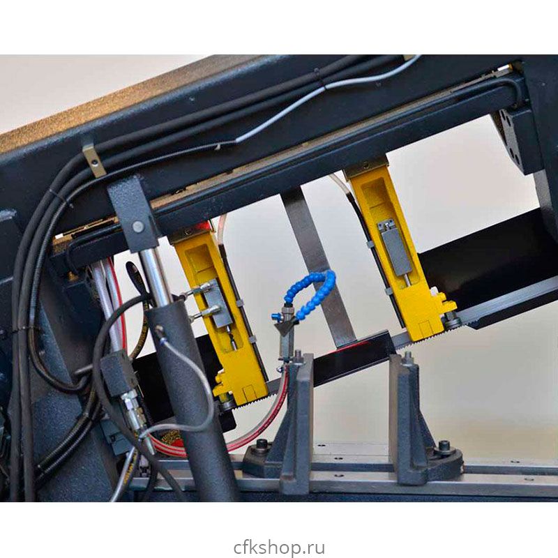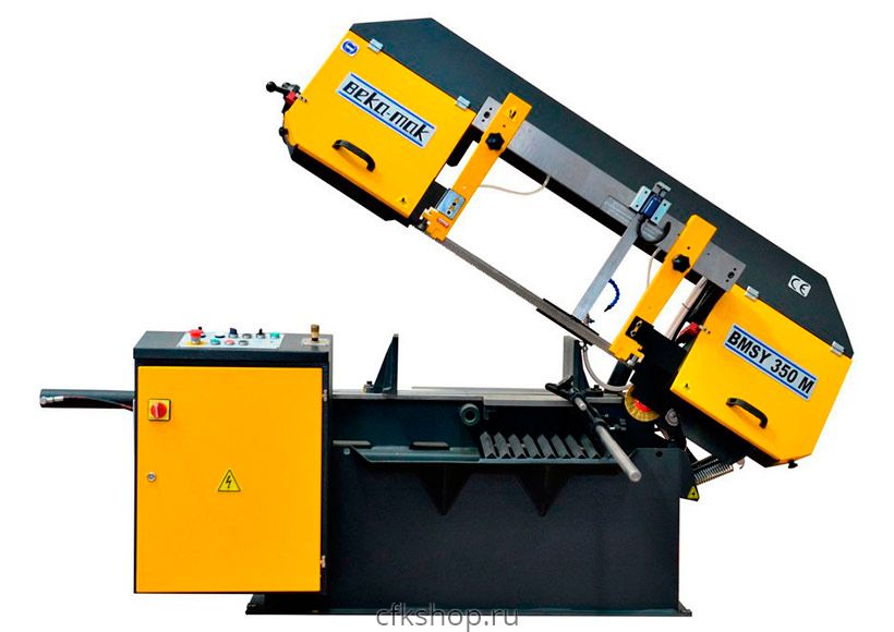 Полуавтоматический ленточнопильный станок BMSY 350 M турецкого производителя Beka-Mak с длиной ленточного полотна 4160 мм, высотой рабочей поверхности 640 мм и скоростью резания 20-100 м/мин используется для производительной резки профильного и сплошного металлопроката. Пильная рама опускается под собственным весом, скорость опускания регулируется с выносного пульта управления. Возврат пильной рамы в исходное положение и зажим заготовки происходит с помощью гидравлики, после команды оператора. Подходит для резки сплошного и профильного металлопроката преимущественно под углом 90° диаметром до 350 мм.Максимальные размеры заготовок:
