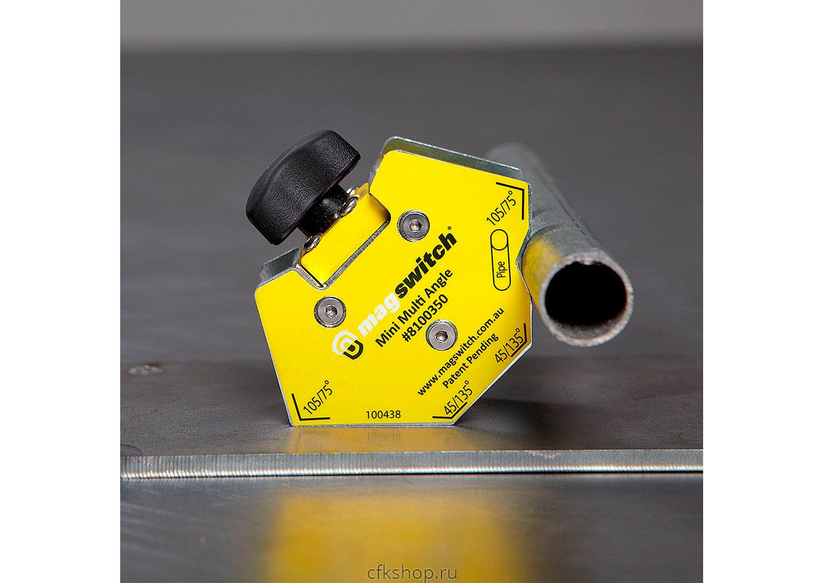 Магнитное приспособление Magswitch Mini Multi Angle - это небольшой, простой в использовании инструмент для фиксации деталей под углом 45, 60, 90 и 120. Его небольшой размер и прочная фиксация делают его идеальным при изготовления небольших изделий или декоративной сварке. С двумя углами 90 градусов и одним углом 45 градусов вы всегда будете знать, что ваши сварные швы получатся правильными.Особенности: