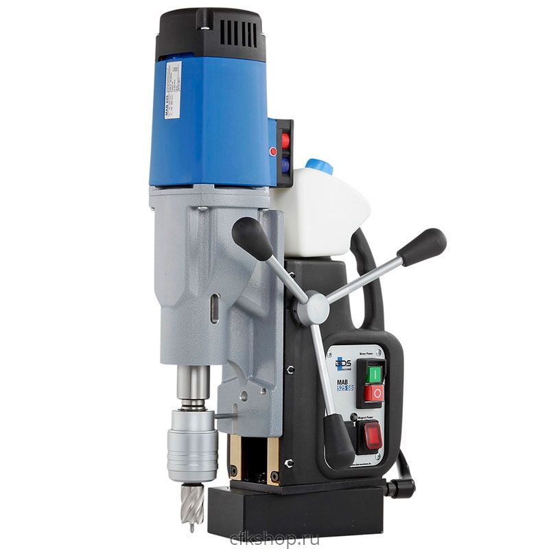 Магнитный сверлильный станок MAB 525 SB с поворотным механизмом, который дает возможность поворота магнитного основания до 20º относительно вертикальной оси в обе стороны и до 15 мм по длине для точного позиционирования. МАВ 525 SB – высокофункциональный сверлильный станок на магнитном основании для корончатого сверления Ø до 50 мм и нарезания резьбы до М20 с усиленными направляющими.