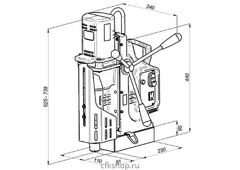 К особенностям конструкции данной модели станка стоит отнести следующее: расстояние от оси шпинделя до основания составляет 56 мм, что больше по сравнению с аналогами. за счет применения моноблочной конструкции редуктор-суппорт в сверлильной машине увеличенная точность и жесткость. саморегулирующиеся направляющие исключающие появление люфта, что увеличивает срок эксплуатации и надежность магнитного сверлильного станка.