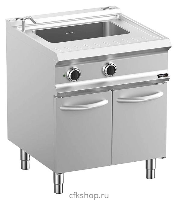 Макароноварка Apach Chef Line GLPCE77CSP 700-й серии используется на предприятиях общественного питания и торговли в составе технологической линии или самостоятельно для приготовления спагетти, пасты и прочих изделий из теста. Модель оснащена кранами для залива и слива воды и закрытой подставкой с регулируемыми ножками. Столешница, вентиляционная решетка и передняя панель выполнены из нержавеющей стали AISI 304, боковые и задняя панели, дверца - из нержавеющей стали AISI 430, ванна - из нержавеющей стали AISI 316, нагревательные элементы - из армированной нержавеющей стали.