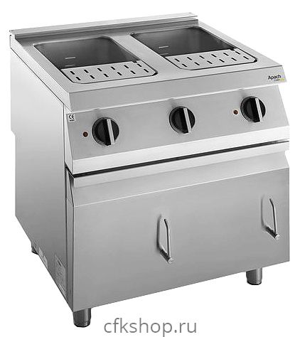 Макароноварка Apach Chef Line SLPCE89CS 900-й серии используется на предприятиях общественного питания и торговли в составе технологической линии или самостоятельно для приготовления спагетти, пасты и прочих изделий из теста. Модель оснащена кранами для залива и слива воды и закрытой подставкой с регулируемыми ножками. Столешница, вентиляционная решетка и передняя панель выполнены из нержавеющей стали AISI 304, ванна - из нержавеющей стали AISI 316, нагревательные элементы - из армированной нержавеющей стали.