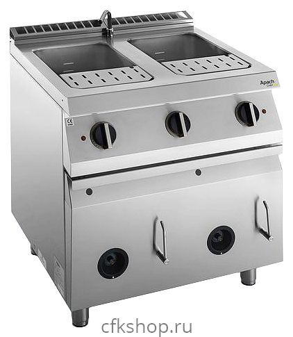 Макароноварка Apach Chef Line SLPCG87CS 700-й серии используется на предприятиях общественного питания и торговли в составе технологической линии или самостоятельно для приготовления спагетти, пасты и прочих изделий из теста. Модель оснащена краном для слива воды и закрытой подставкой с дверцей и регулируемыми ножками. Корпус выполнен из нержавеющей стали AISI 304, ванна - из нержавеющей стали AISI 316.