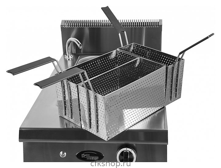 Макароноварка Grill Master Ф1МВГ/800 линии 800 используется на предприятиях общественного питания и торговли для приготовления риса, яиц, пасты, макарон, овощей, вареников, пельменей или для кипячения воды. Модель оснащена горелкой, электророзжигом, газконтролем и 3 сетками для продуктов с крепежами для установки над варочной емкостью. Корпус и сетки для продуктов выполнены из нержавеющей стали, заливной кран - из полированной нержавеющей стали.