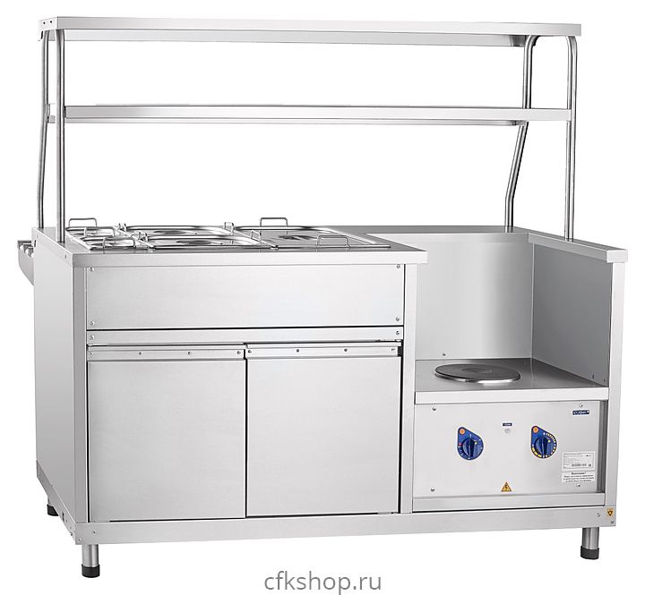 - Двойная полка над мармитом с подсветкой для выкладки блюд