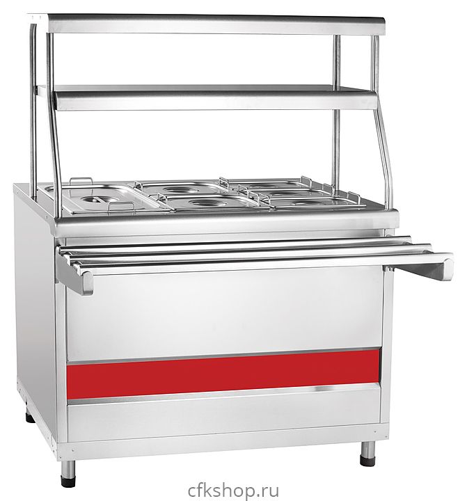 - Двойная полка над мармитом с подсветкой для выкладки блюд