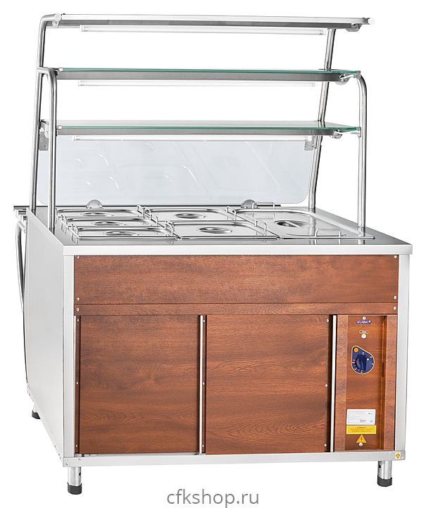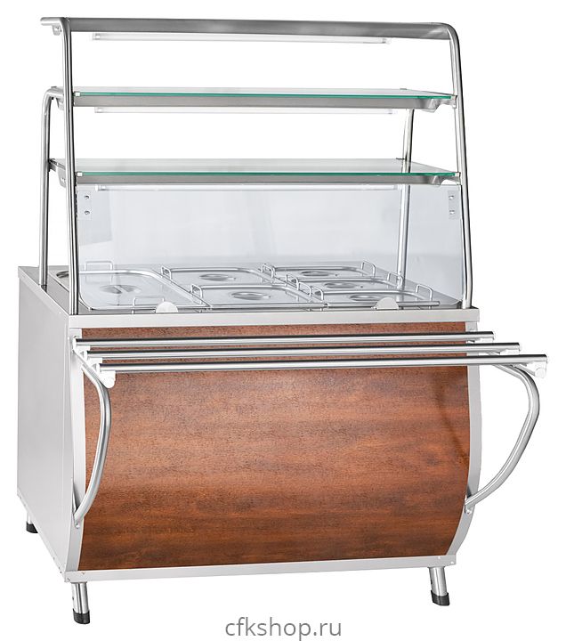 - Двойная полка над мармитом с подсветкой для выкладки блюд